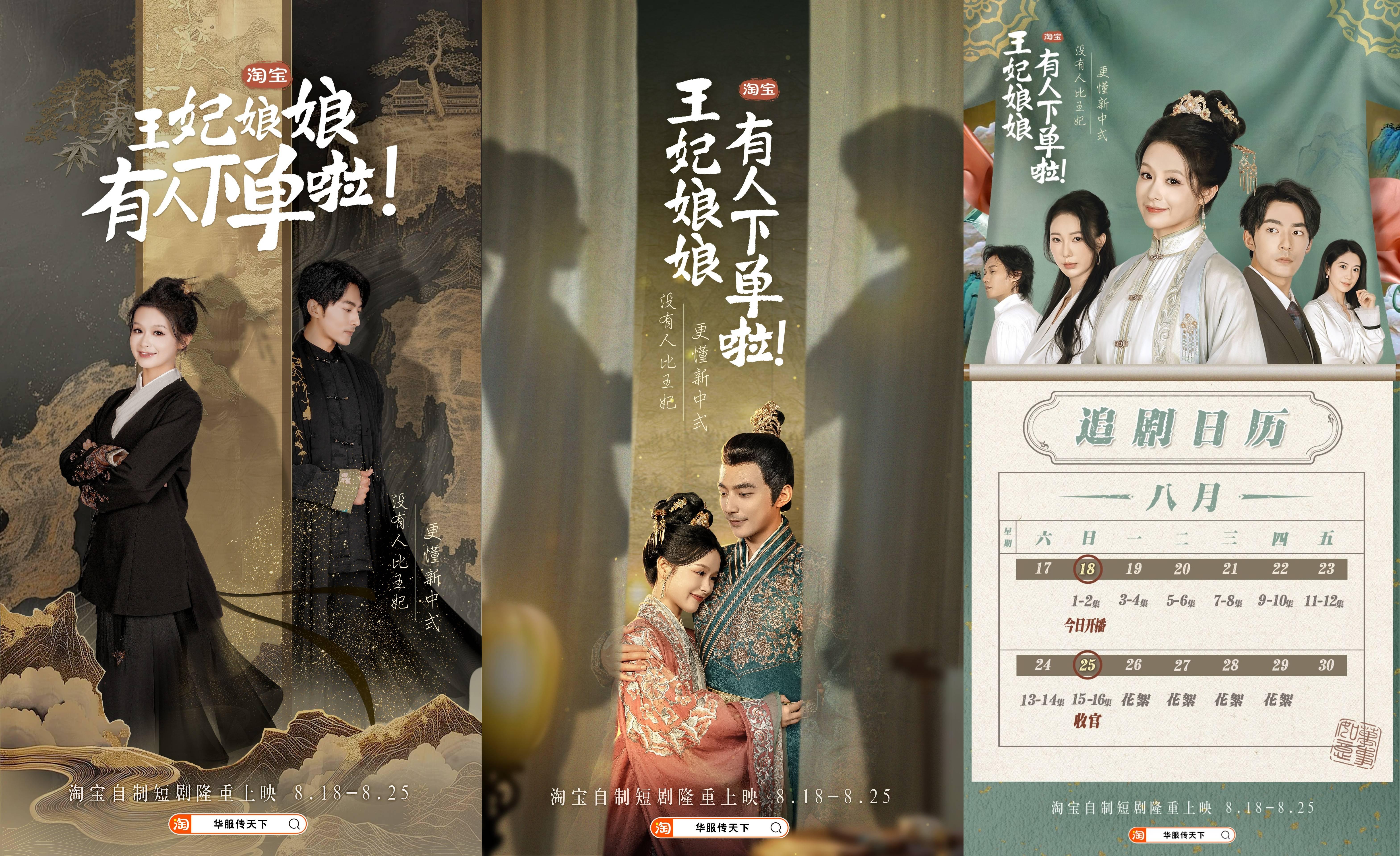近两年,刮起了一股“新中式”风,很多年轻人穿着“新中式”出游、逛街。也因此,淘宝作为伴随新中式商家成长的平台决定以“平台助力品牌出海故事”为灵感,制作短剧《王妃娘娘,有人下单啦!》,以短剧形式为新中式种草,从而辐射整个品类的方式也开辟了品牌短剧新赛道。