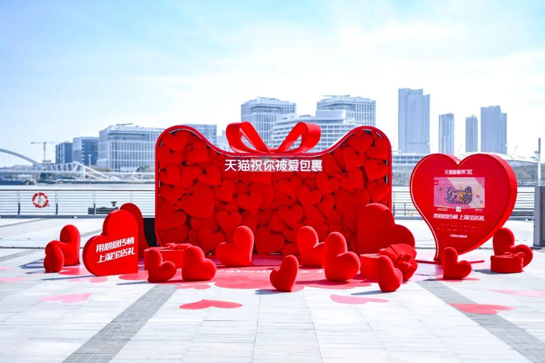 此地一经开放,便凭借吸睛的场景与浪漫氛围,精准击中年轻人热衷打卡、乐于分享的心理。不少路过的行人驻足打卡,在爱心背景墙前合影,甚至分享至社交平台,无形间助推了天猫这一活动的广泛传播。
