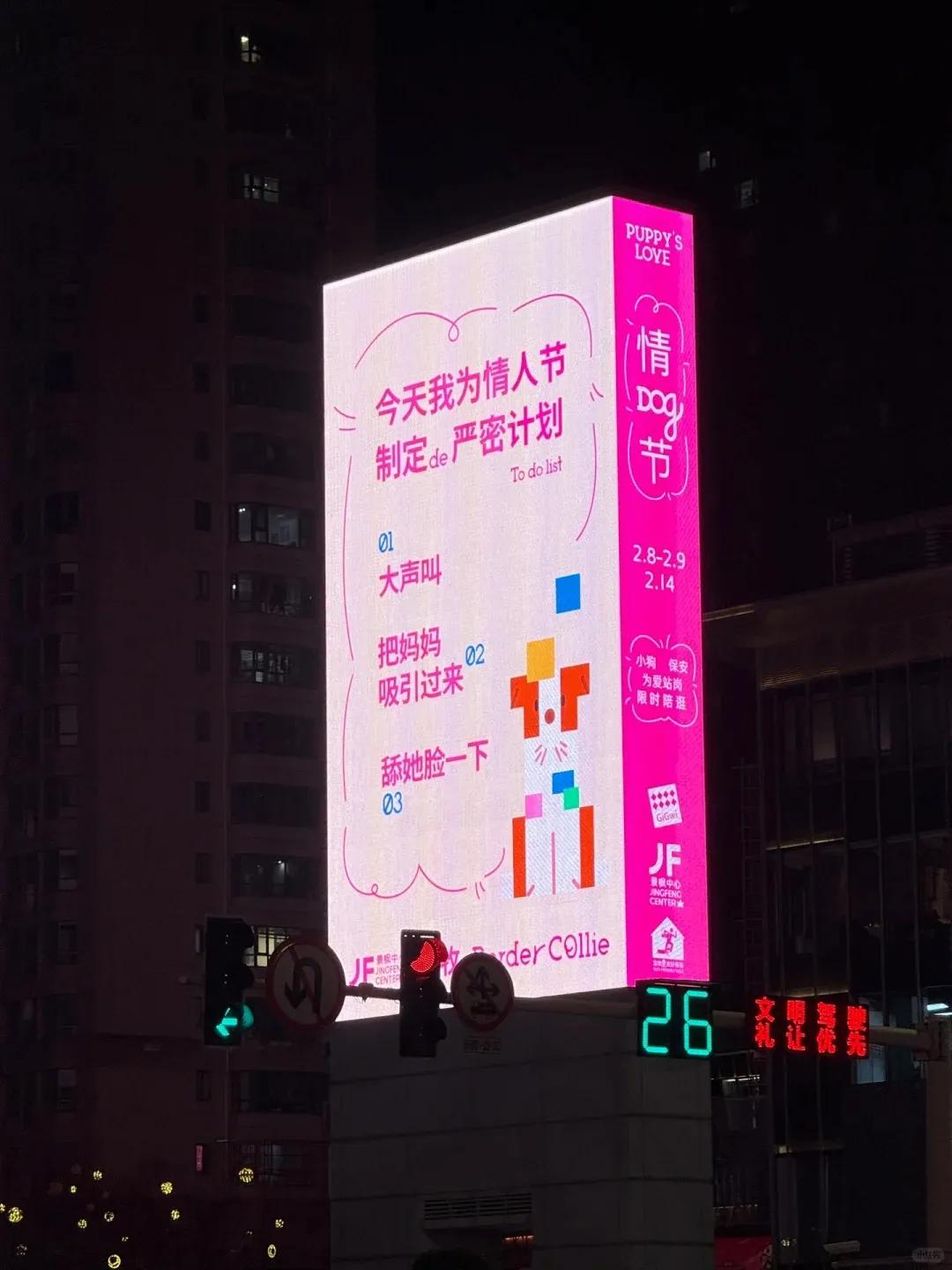 今年情节人,位于南京江宁的商场景枫中心联合插画师@单元格 上线”情Dog节“海报,从德牧、边牧、比格等品种狗的视角对铲屎官讲各种“小狗情话”,看完真的被狠狠治愈了。
