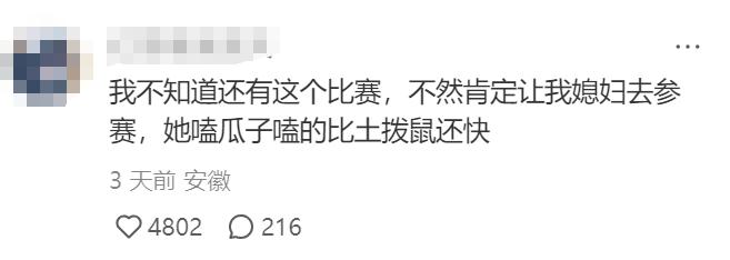 而且这场比赛还有上千人参加,哈哈哈哈看得出大家是真爱嗑瓜子啊,也算是找到自己最擅长的赛道了。