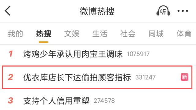 优衣库热搜第二,优衣库被指部分门店存在偷拍顾客KPI