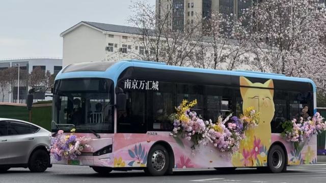 南京万城汇鲜花公交车出圈,南京的春日营销已经next level了