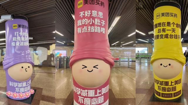 美团买药被地铁柱子萌到了,美团买药新广告好会玩啊