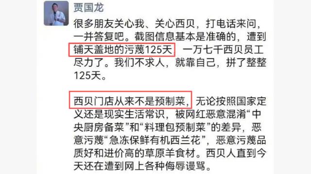 西贝西贝关闭102家门店,贾国龙微信朋友圈发言又惹争议
