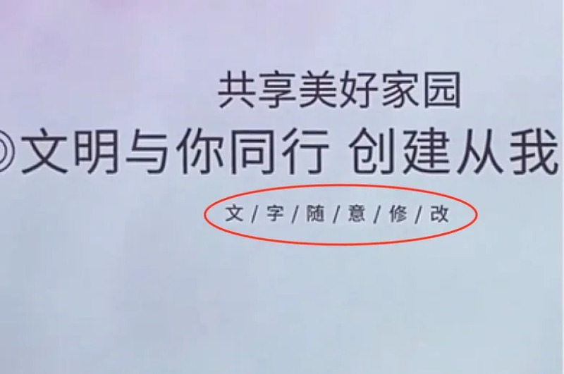 然而,令人惊讶的是,在海报的醒目文案“创建文明城市,共享美好家园,文明与你同行,创建从我做起”之下,竟然还印有一行小字“文字随意修改”。