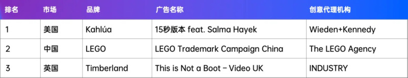 好创意不分国界、不分平类,不分形式,数字/社媒广告、电视广告、印刷/户外广告领域最佳作品得主“出生多样”。值得一提是,今年我们首次看到来自中国市场的广告跻身榜单。欢迎下载报告,了解完整榜单及创意分析。