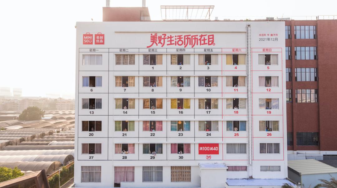 在广州珠江钢琴创梦园,名创优品的新年特辑——一栋建筑被“打扮”成巨型日历。硬核又不失浪漫。。。