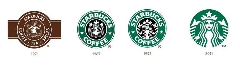 星巴克logo的更迭历程,其实就有点像是越来越放大。。一开始是美人鱼的全身像,然后每一代版本在逐渐扩大,就是造型越来越简洁了。