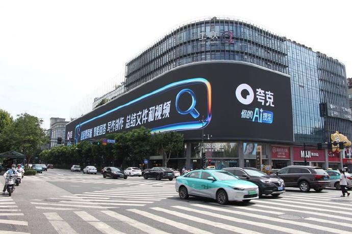 此外,夸克的「超级搜索框」如同城市间的灵动光标,闪耀在北京、广州、深圳等地的繁华商圈、核心广场及繁忙机场的巨型屏幕上,形成了一道独特的城市风景线。