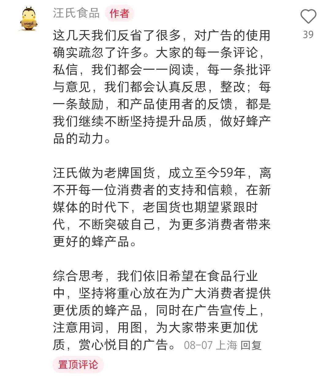 比如最近蜂蜜品牌汪氏蜜蜂园的一则文案就被网友吐槽出圈。