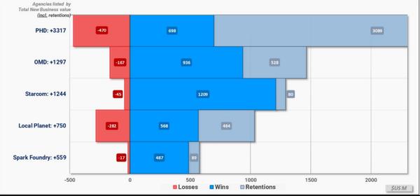 不计留存,Starcom位居榜首,其次是OMD和Spark Foundry。