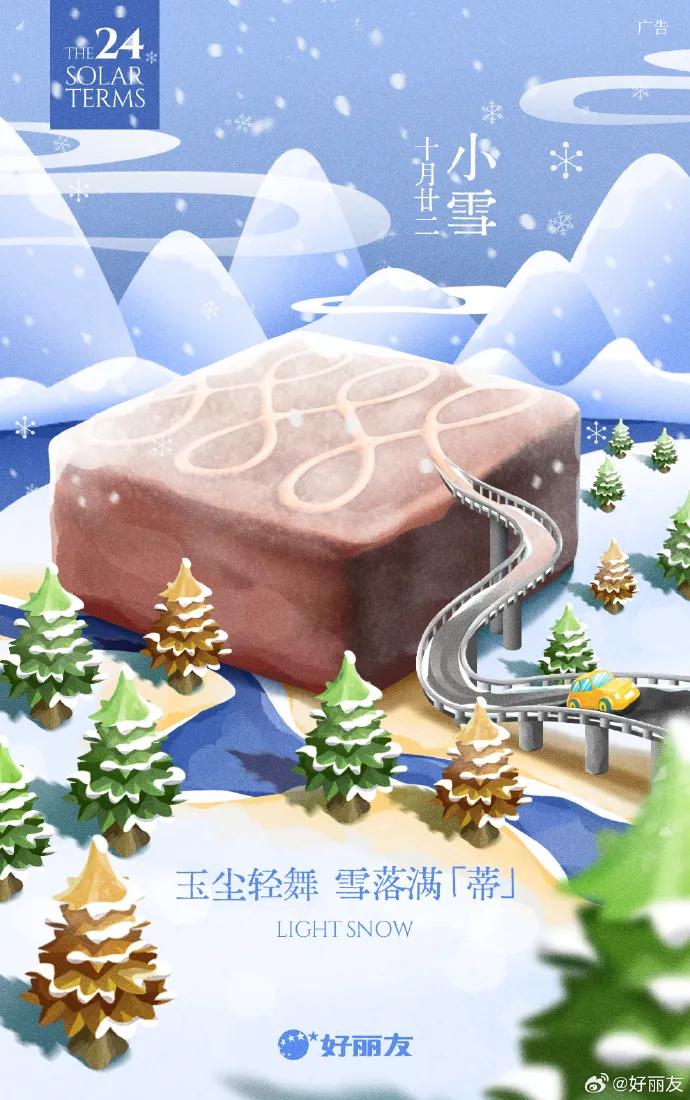 因此,品牌借势小雪节气推出海报,也能够借助这一文化符号,向消费者传递温暖与关怀的信息,拉近与消费者的距离,增强品牌的文化底蕴和亲和力。