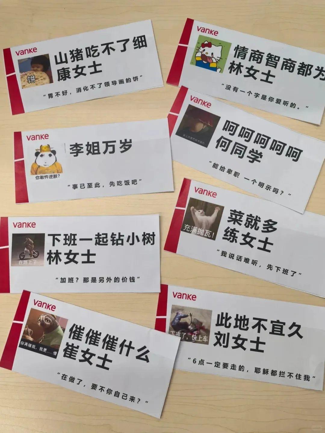 这些工牌很有意思,它的灵性的地方在于把这个员工的姓、人物性格特征、网络梗三者给连接起来了。
