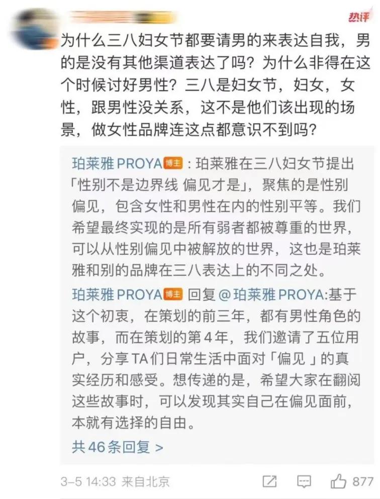 后来珀莱雅作出了回应,表示提出「性别不是边界线 偏见才是」聚焦的是性别偏见,包含女性和男性在内的性别平等,希望最终实现的是所有弱者都被尊重的世界,可以从性别偏见中被解放的世界。