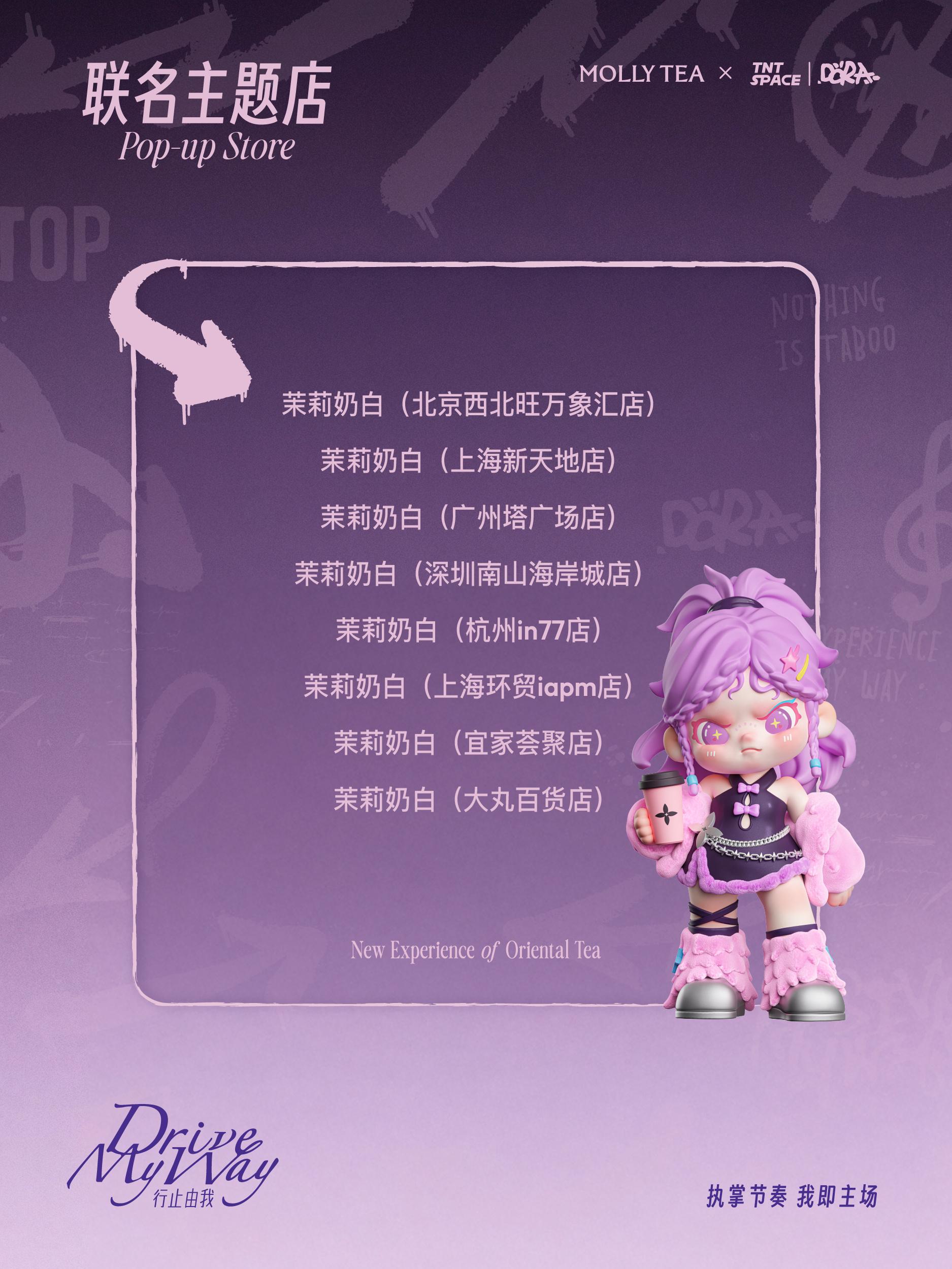 另外,茉莉奶白还在全国多家门店设置了主题店,为消费者提供了一个沉浸式的互动体验空间。消费者可以前往主题店参与打卡活动,感受联名带来的独特氛围。