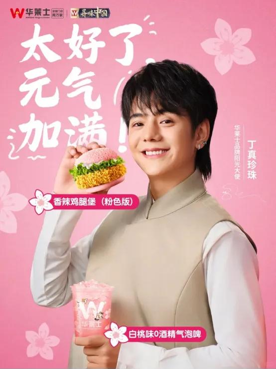 同时还上线了两款产品,粉汉堡和白桃味0酒精气泡啤,同时还有各种丁真相关周边,确实是做足了春日氛围感,一整个少女心爆棚。