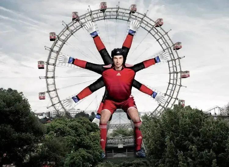 还有2008年欧洲杯期间,高达60米的彼得·切赫(Petr Cech)出现在维也纳的普拉特摩天轮旁,用“千手观音”似的方式直观、生动地展现守门员的基础技能和防守能力。