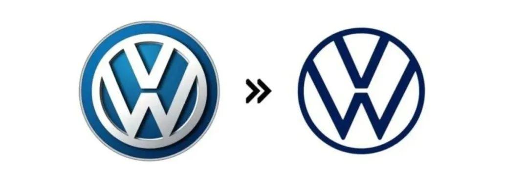 大众LOGO从立体镀铬设计转向扁平化单色线条,字母“V”与“W”间距调整以增强辨识度;