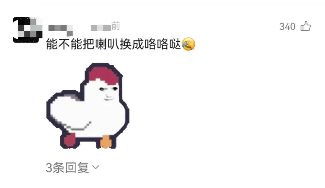 还有人积极给建议,觉得喇叭换成“咯咯哒”,或者“你~干~嘛~哎呦~”更有内味,很不错,小叶光看文字已经能脑补出声音了。